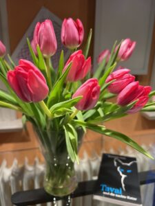 Die stehen jetzt neben mir auf dem Schreibtisch, während ich diesen Text schreibe. Die Tulpen auf meinem Schreibtisch erfreuen mein Herz und sie erzählen vom Frühling. Ich muss immer lächeln, wenn ich von der Tastatur aufschaue und die Tulpen ansehe.