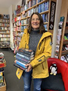 Im Buchladen hatte ich einen kurzen, aber feinen Plausch mit Harald, meinem Kieler Lieblingsbuchhändler. Wir haben über das Kieler Krimi Festival gesprochen und dann hat er mich nach meinen 777 Krimis gefragt. Also den 777 Exemplaren von „Taval und die nackte Katze„, die in meinem Arbeitszimmer stehen. Er hat mir tolle Ideen gegeben, wie ich die doch noch an Leser*innen bringen kann. Diese Ideen werde ich weiter denken.